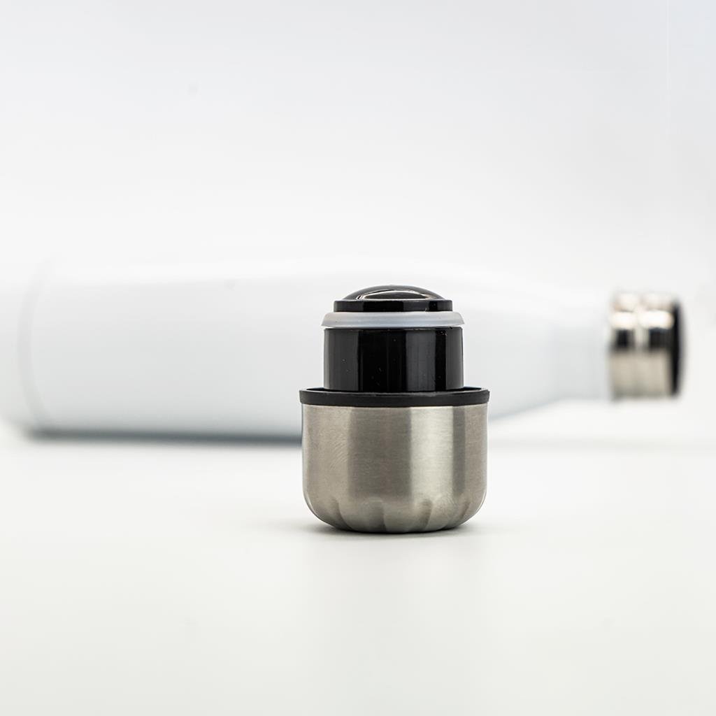 - Color: Blanco con tapa plateada
